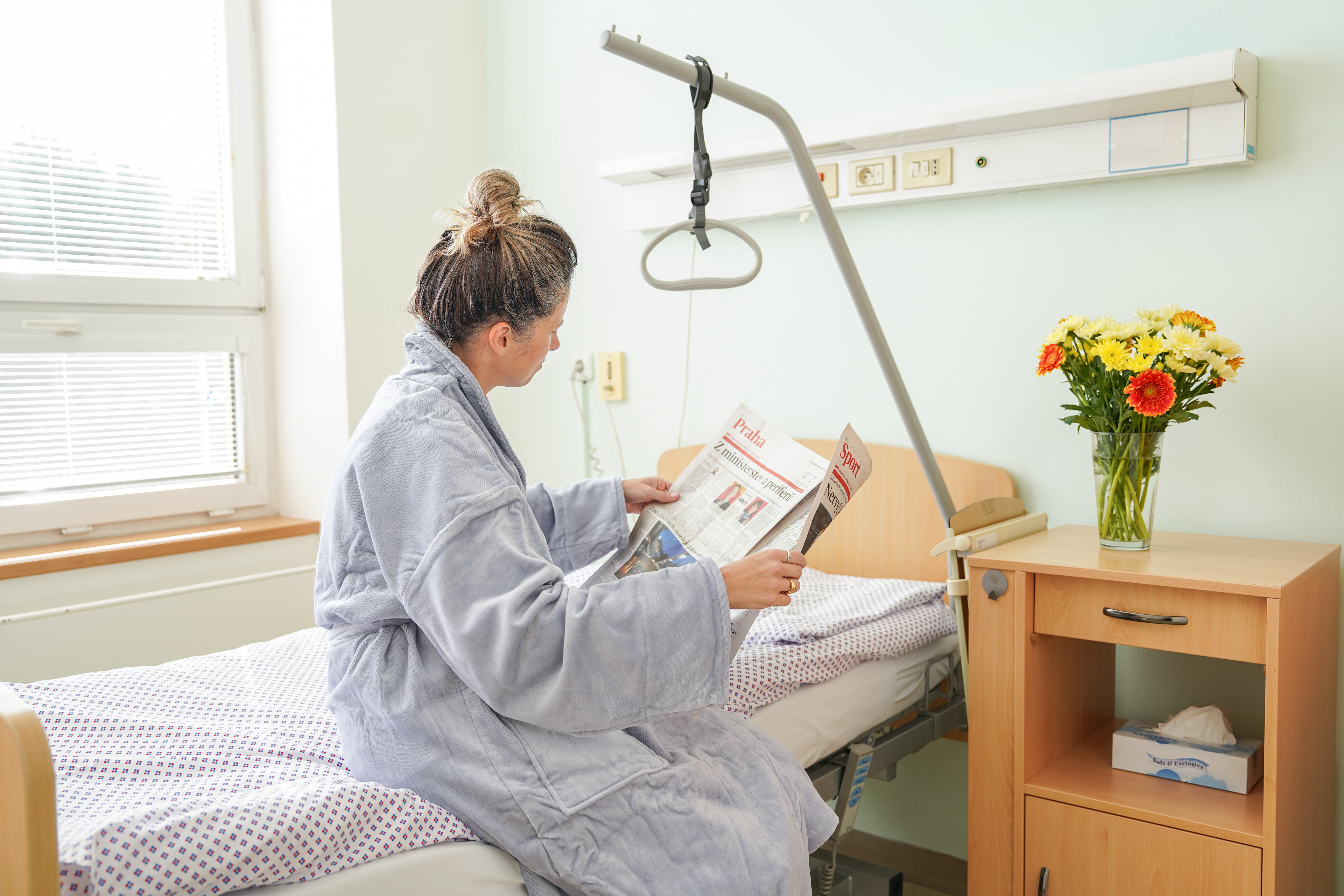 Pacienti jsou ubytováni v jednolůžkových, dvoulůžkových a třílůžkových pokojích, s vlastním bezbariérovým sociálním zařízením, elektricky polohovatelnými postelemi a bezplatným internetovým připojením v celém objektu. Nadstandardní pokoje jsou vybaveny lednicí a televizí. Lůžkové oddělení má k dispozici venkovní terasu s posezením.