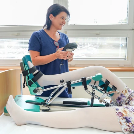 Speciální rehabilitační přístroje (např. motodlaha, rotoped) umožňují šetrné a kontrolované procvičování operovaných končetin. Cvičení na rehabilitačních přístrojích je možné pouze na doporučení ošetřujícího lékaře.